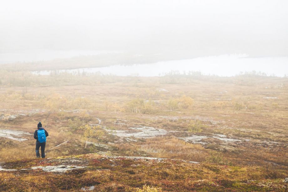 Eine weitere lohnenswerte Tour ist der kurze Hike auf den Blomstestigen. Die Tour führt einen hinauf auf 830m und belohnt oben angekommen mit atemberaubenden Rundblick in Richtung Norwegen und das endlose Fjäll. Wer Glück hat kann Rentiere beobachten und falls nötig in einer Shelter Unterschlupf vor dem Wetter suchen, hier leider ohne geschlossenen Raum.